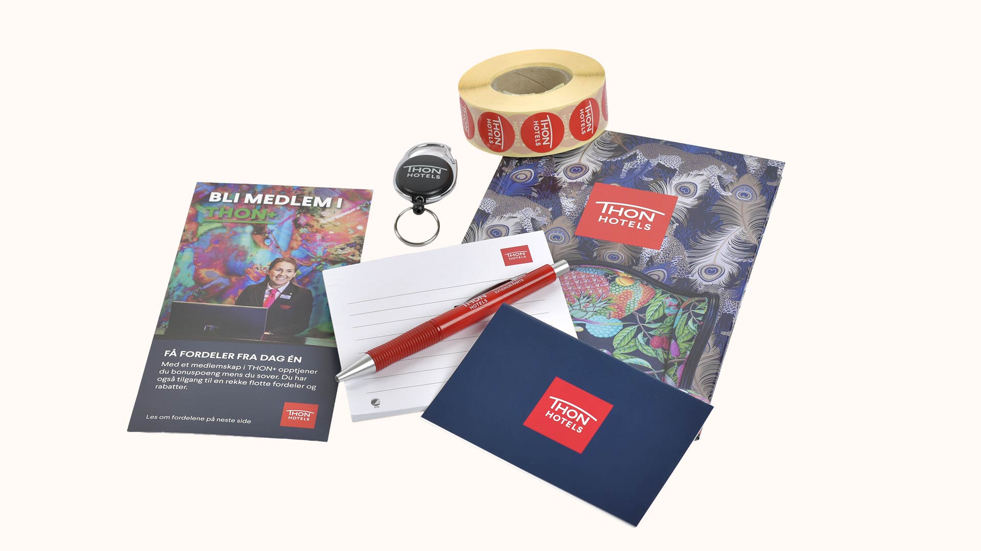 Thon Gruppen består av tre hovedsegmenter – kjøpesenter, hotell og næringseiendom – med hoteller over hele Norge. Samtlige hoteller har løpende behov for trykksaker, profilartikler samt effektiv lagerføring og distribusjon.